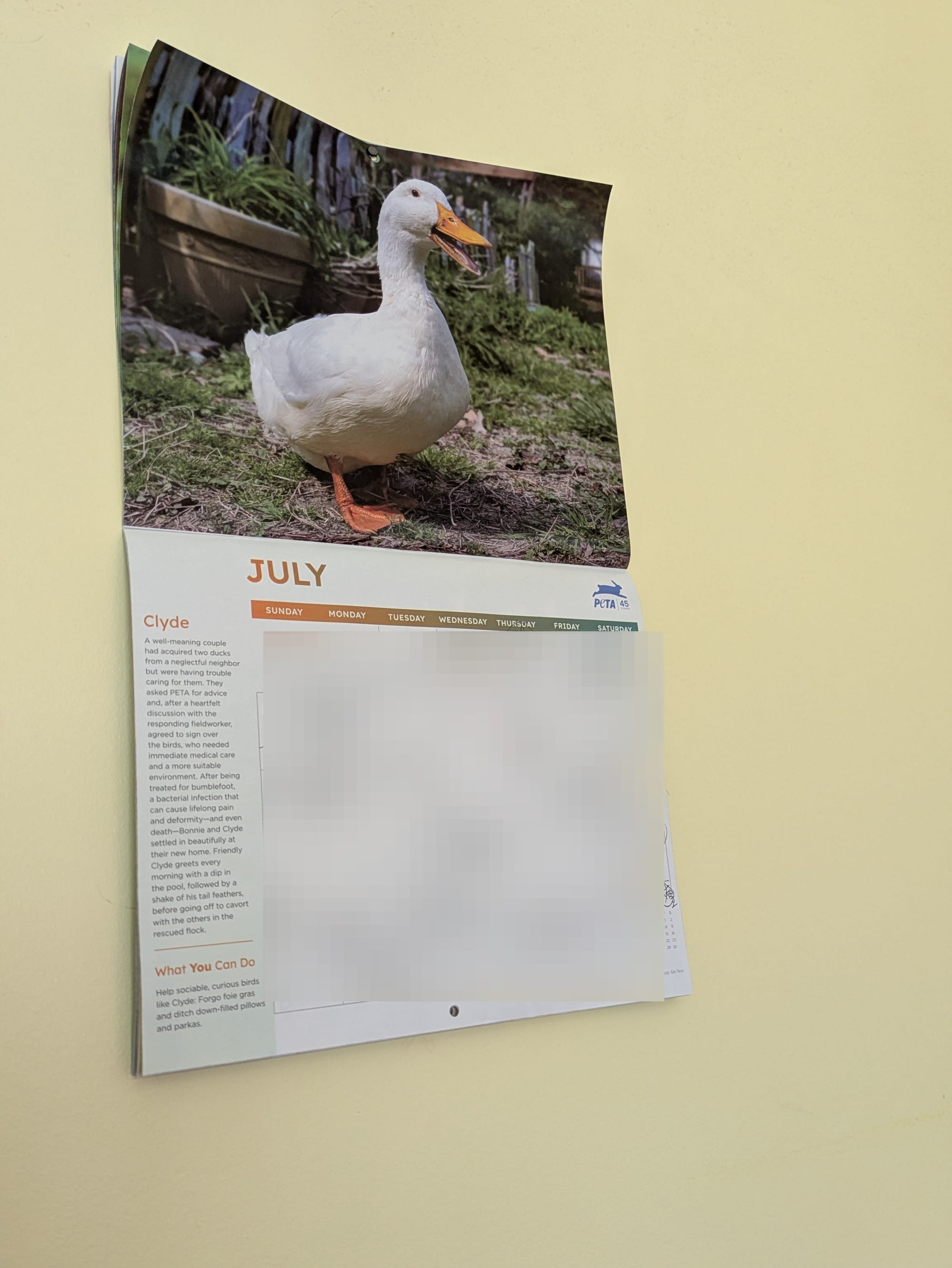 PETA's July 2025 animal was a duck named Clyde.